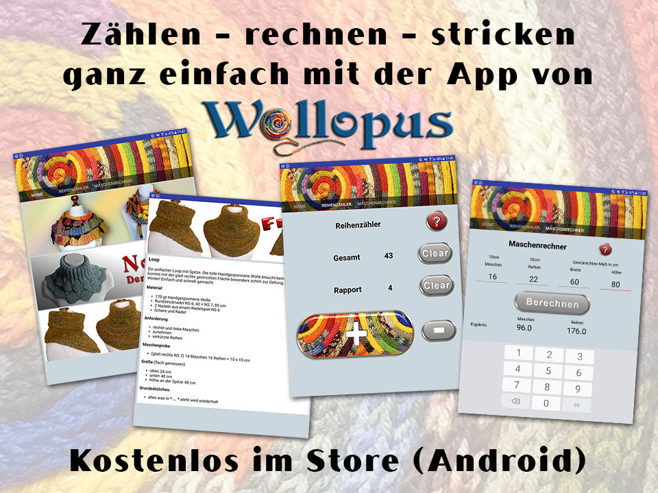 Was kann die App? Ihr findet dort meine Anleitungen, auch Gratisanleitungen die es nur für die App geben wird. Eine Zählapp die nicht nur Reihen zählt, sondern auch zusätzlich den Rapport. Beides in einem, super praktisch für Muster. Den praktischen Maschenrechner damit alles die richtige Größe bekommt. Zum Store Android |