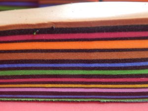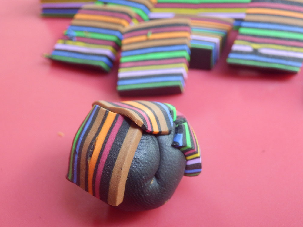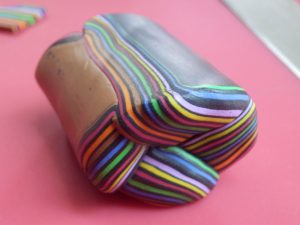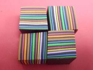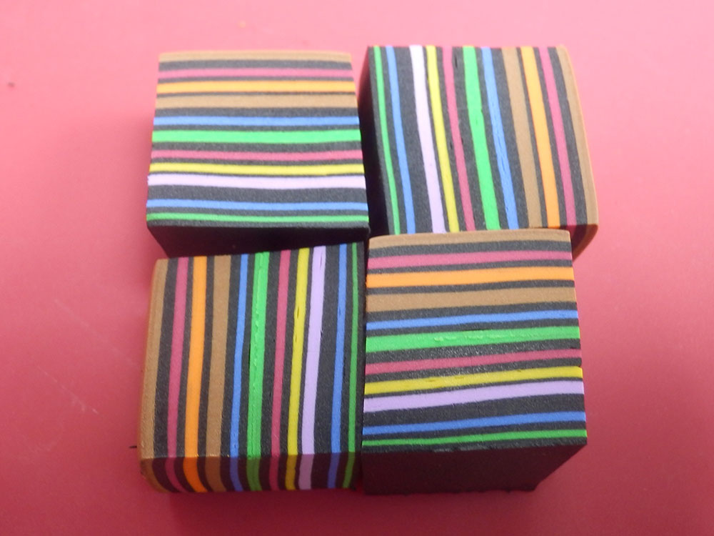 Zuerst wurden möglichst gleich große Platten gewalzt. Immer schwarz und bunt im Wechsel.