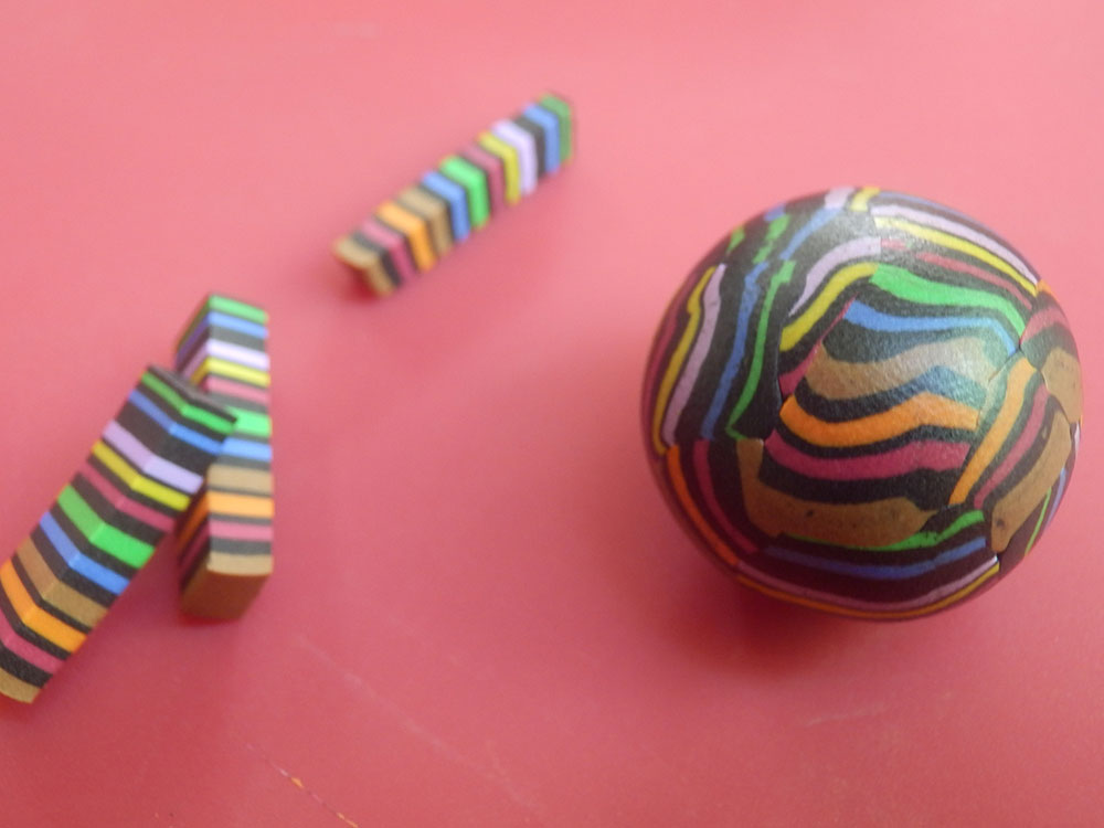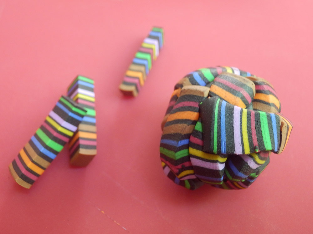 Wenn man diese Scheiben noch einmal teilt und diese auf einen Kern drückt sieht das so aus: