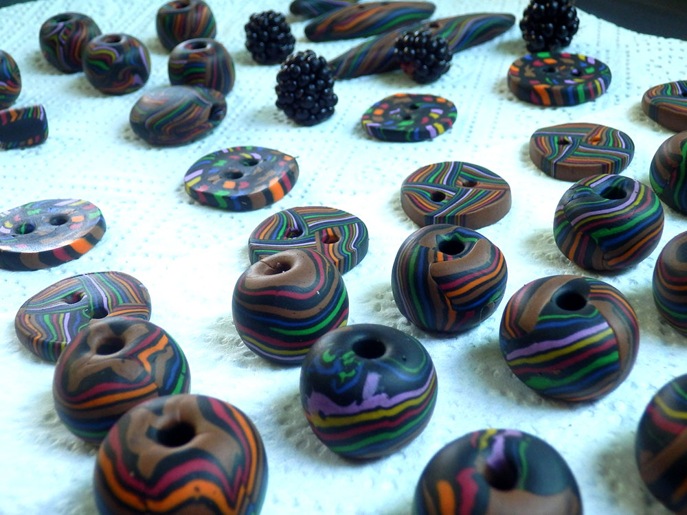 Ich brauchte für ein neues Projekt bunte Perlen mit etwas Gewicht. Entstanden sind dann diese hier, etwa 2cm im Durchmesser.