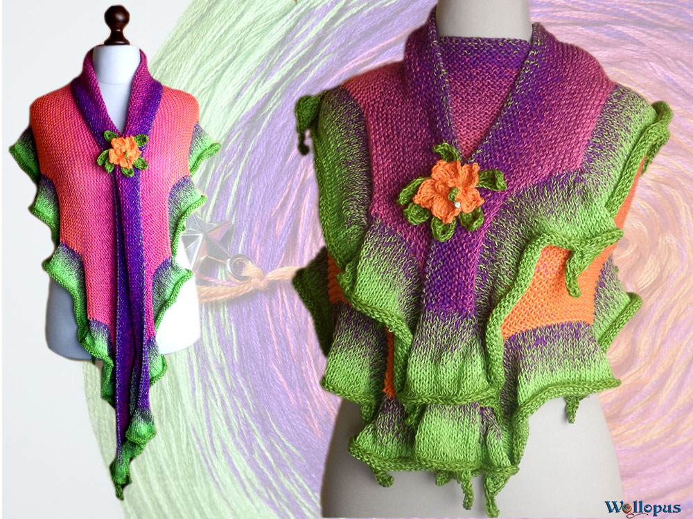 Ich mag Loops, die oben schmaler und sich nach unten verbreitern. Sie sind enger am Hals und liegen schöner auf der Schulter auf. Genauso ist auch das Wölkchen gestrickt, mit versteckten Zunahmen.