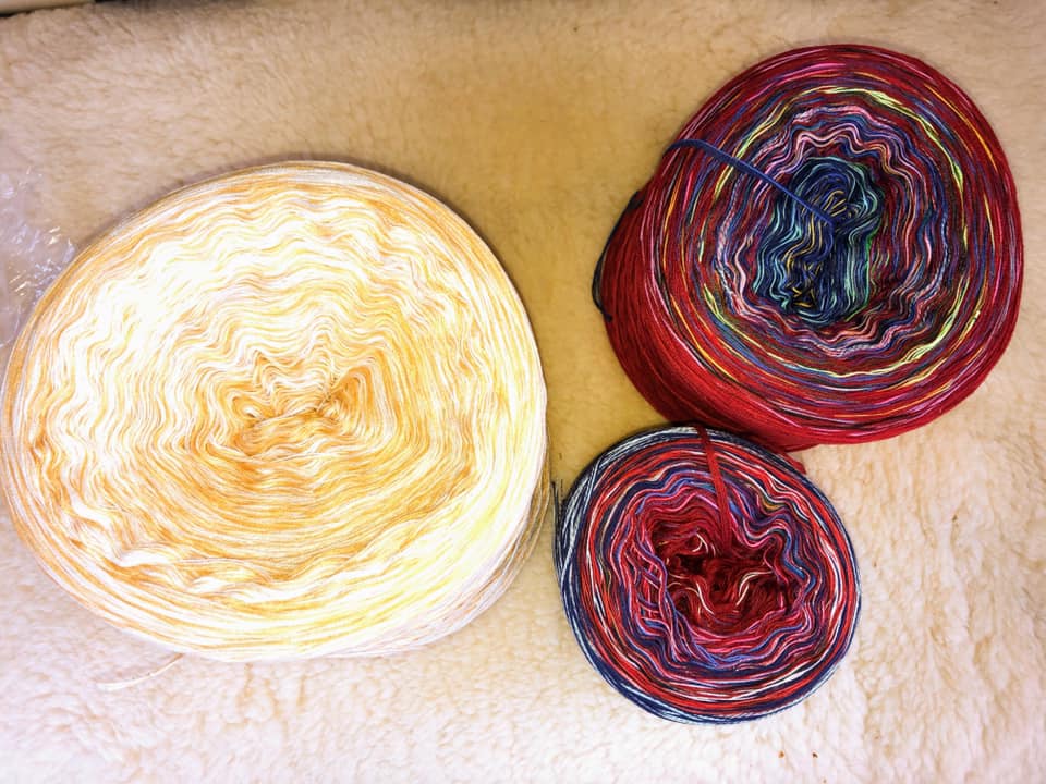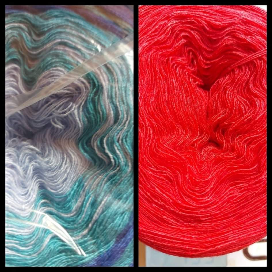 Von Gaby 500 g rot = 750 m Blau/weiß 95 g = 150 m
