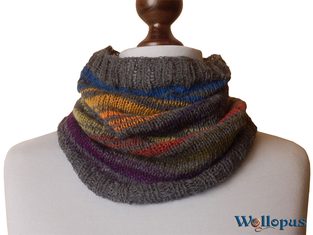 Natürlich fragt Ihr euch bestimmt, was ein Barcode-Kal ist. Die Idee entstand, als ich (Marion/Wollopus) ein Loop mit Streifen stricken wollte. Immer die gleichen Abstände fand ich langweilig, aber was tun? Da ich als Grafikerin kurz vorher einen Barcode auf ein Cover einbauen sollte, hatte ich diese Streifen noch im Sinn. Und da war sie, die Idee den Barcode zu stricken.