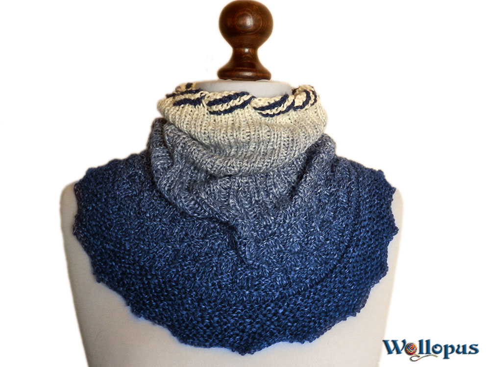 Ich mag Loops, die oben schmaler und sich nach unten verbreitern. Sie sind enger am Hals und liegen schöner auf der Schulter auf. Genauso ist auch das Wölkchen gestrickt, mit versteckten Zunahmen.