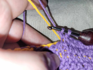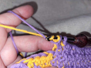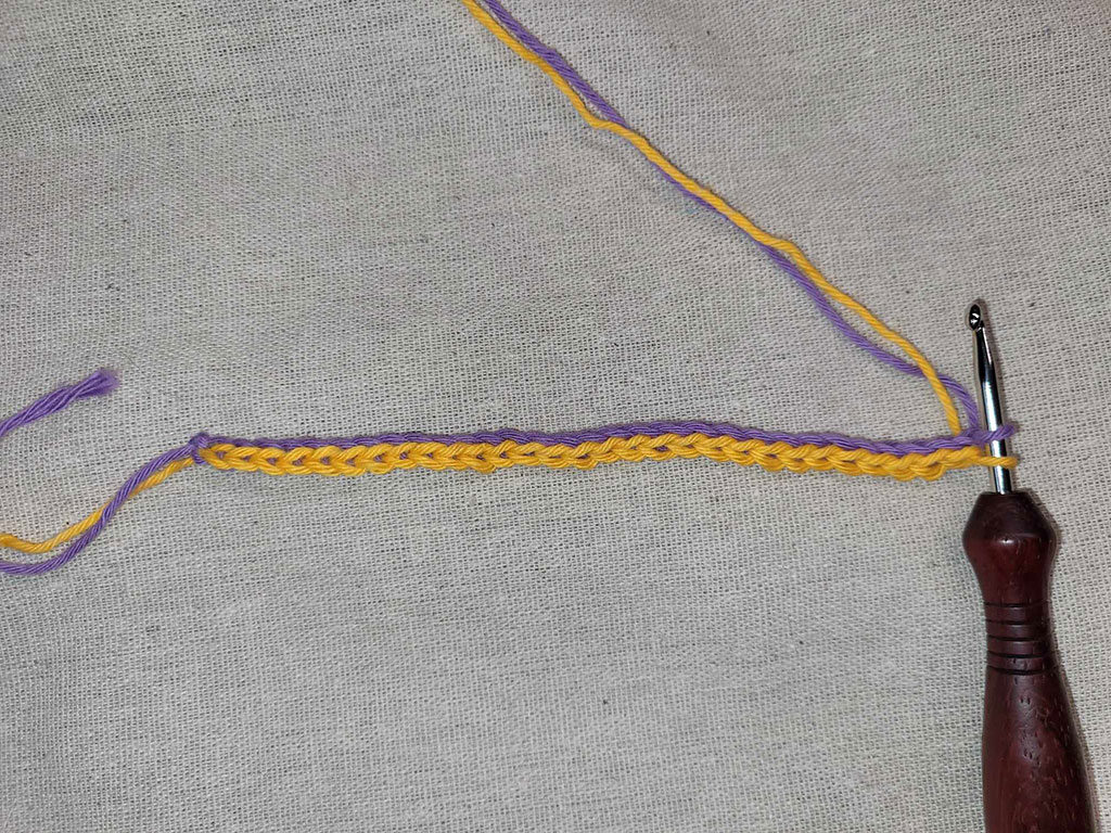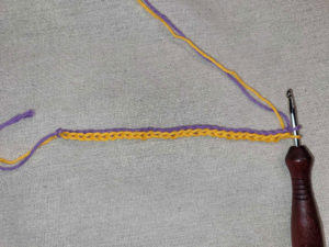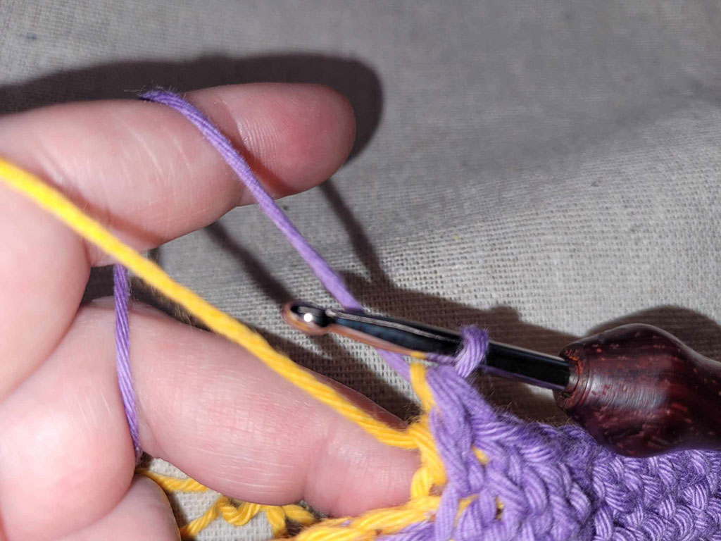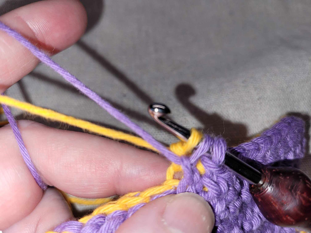 Die Steigeluftmaschen habe ich mit der Farbe gehäkelt die als nächstes vorne liegt.
