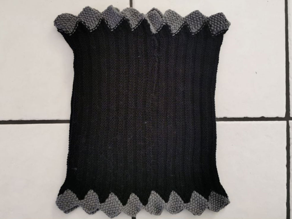 Brigitte hatte ein ganz tolle Idee, die Ecken in einer anderen Farbe zu stricken. Finde ich super!