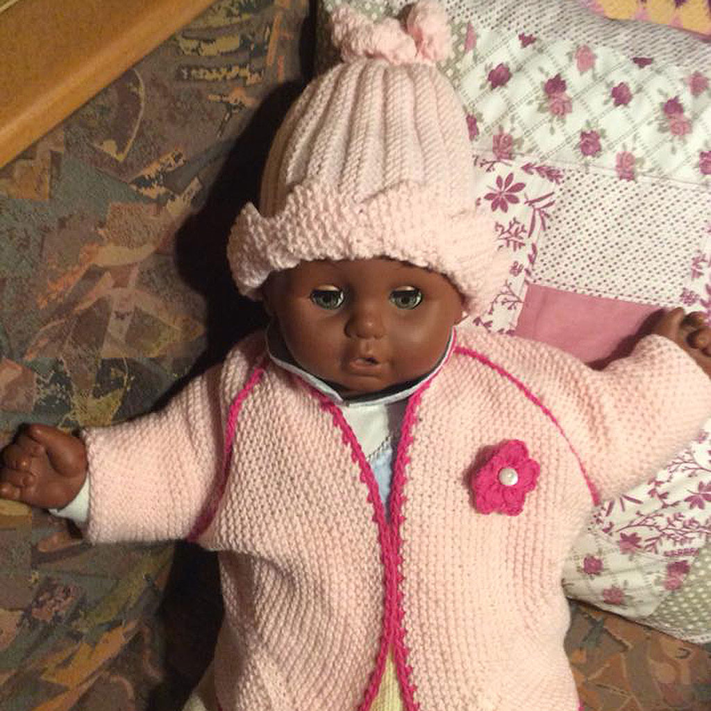 Links die passende Mütze zum Loop. Das Jäckchen ist die Wollopusjacke. Die ist, wie ihr seht, in jeder Größe machbar.