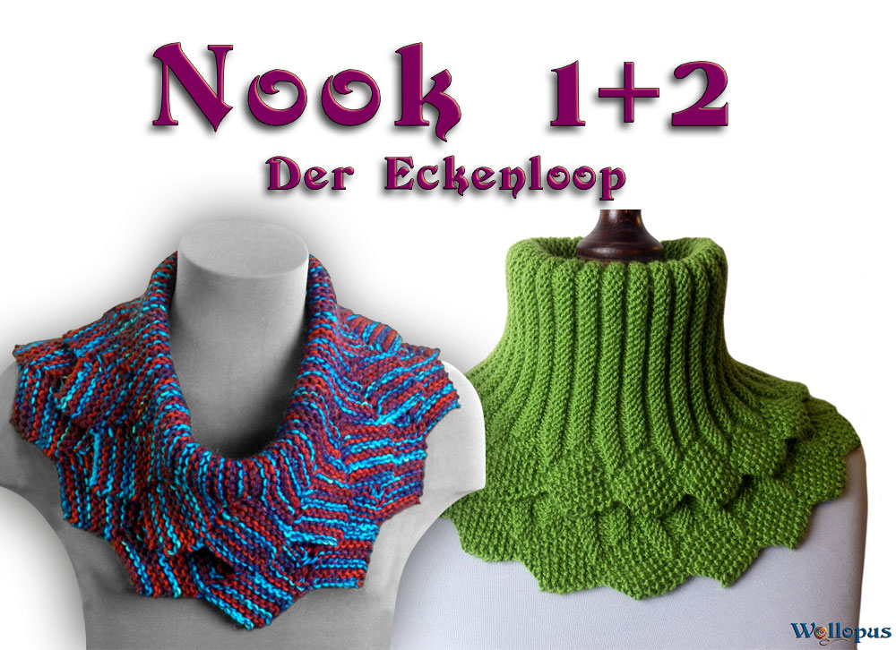 Mittlerweile gibt es den Nook in 2 verschiedenen Ausführungen. Nook 1 ist ganz schlickt mit nur rechten Maschen gestrickt, der Nook 2 mit Rippen. Die Machart ist bei beiden gleich.
