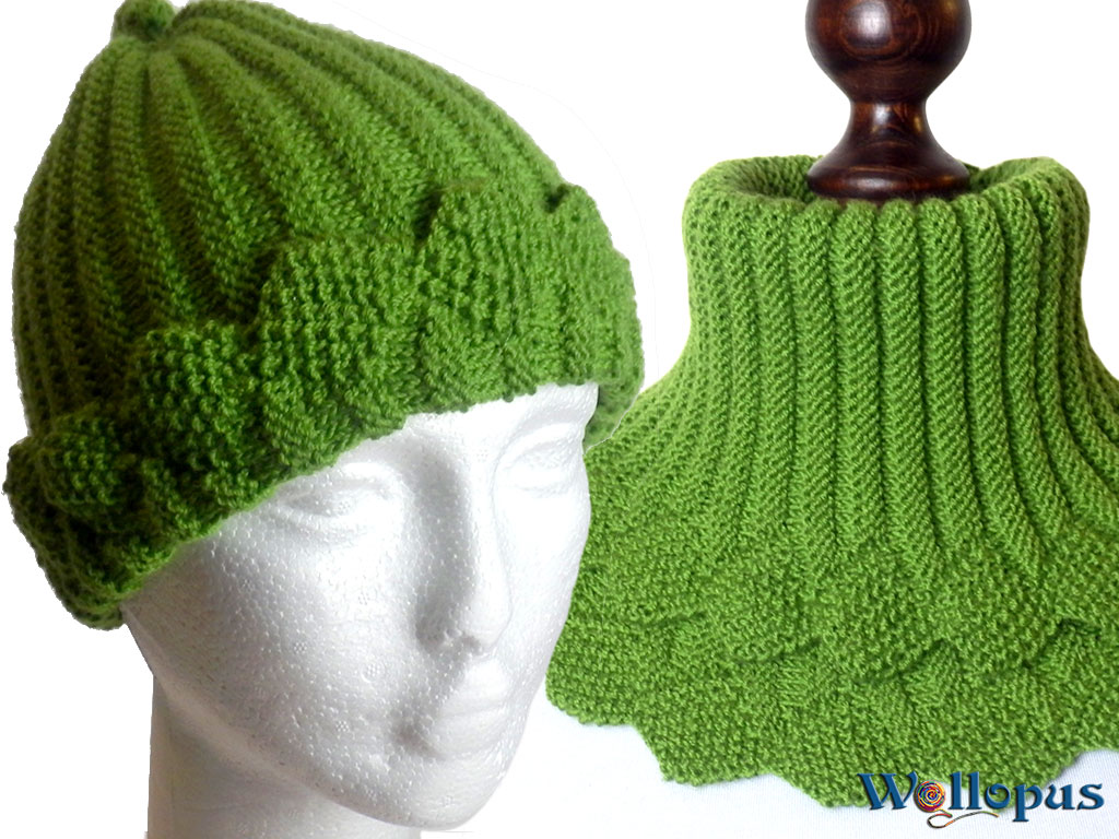 Der Loop, die Mütze, Stulpen und einen Drachenschwanz. Alles passend zueinander und zum Kombinieren.