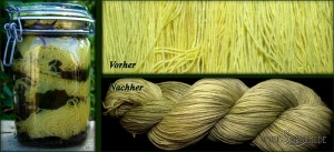 Bin gerade an meinem ersten Wollfärbeexperiment mit Walnüssen…