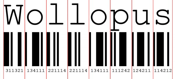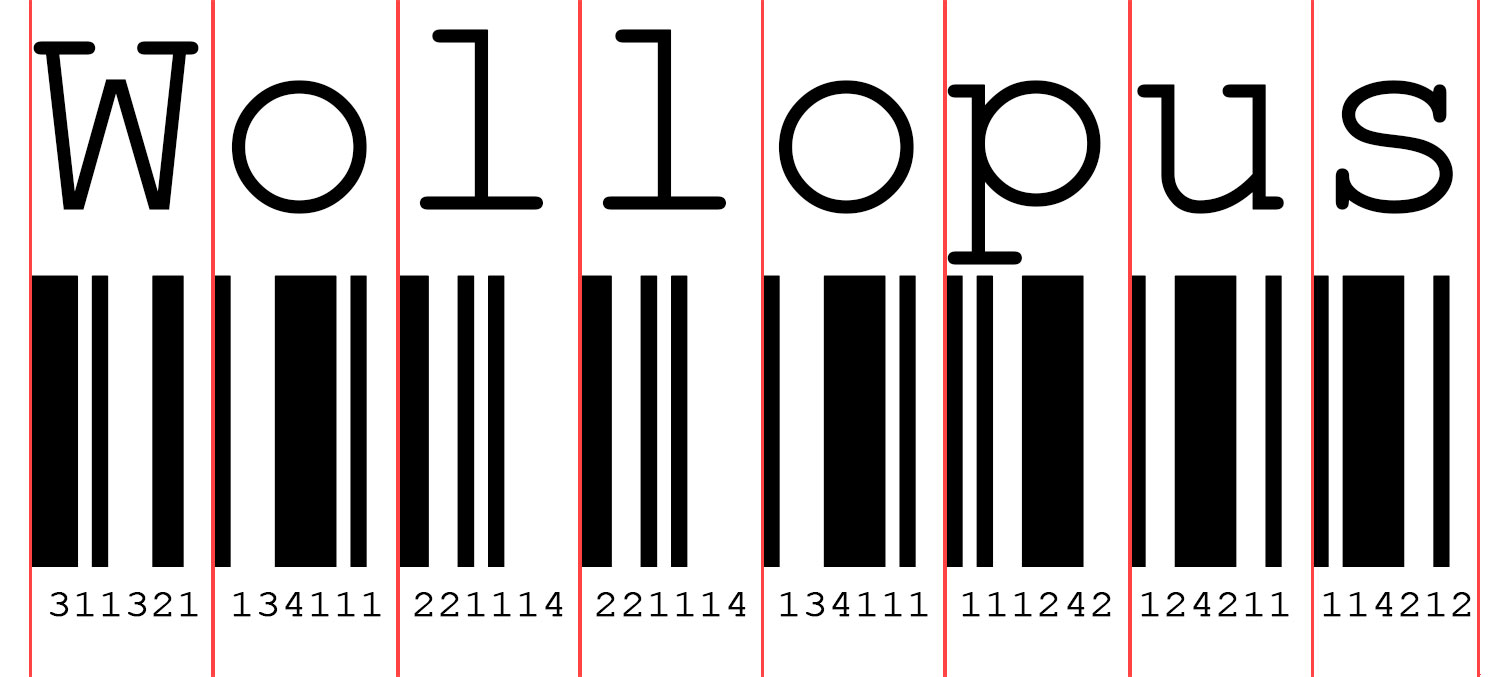 Ein Codewort des Code128 umfasst immer 3 Striche und 3 Lücken und besteht immer aus 11 Modulen. Für uns bedeutet das, das ein Buchstabe oder eine Zahl immer aus 11 Reihen besteht. Die einzelnen Striche und Lücken können 1-4 Reihen breit sein.