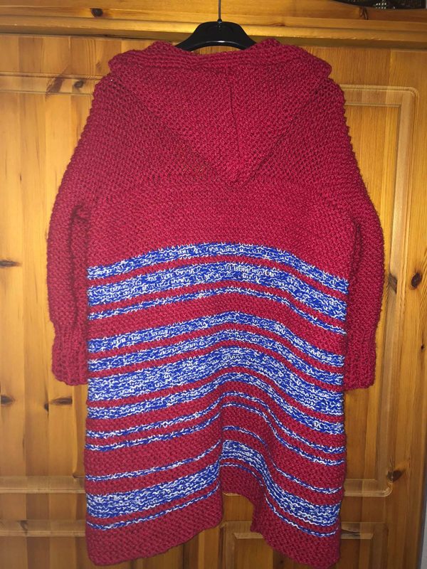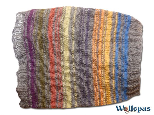 Grundsätzlich kann jedes beliebige Garn und Nadelstärke für das Streifenmuster genommen werden. Wie man die Größe ans Garn und Text anpasst, ist genau beschrieben.