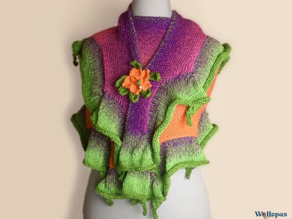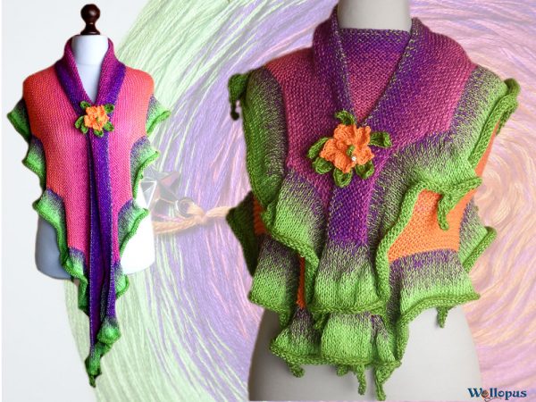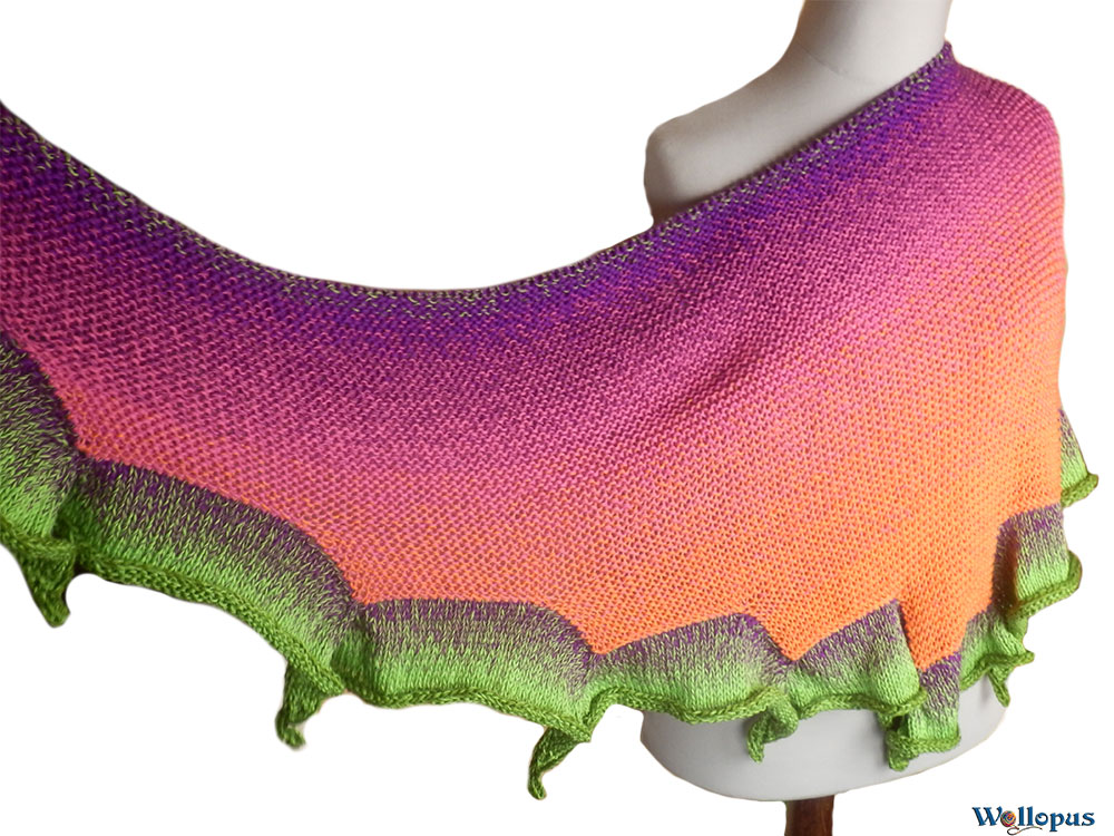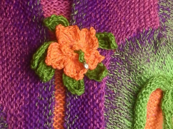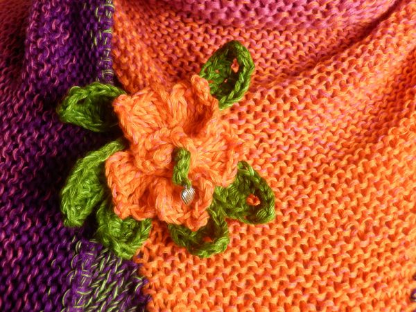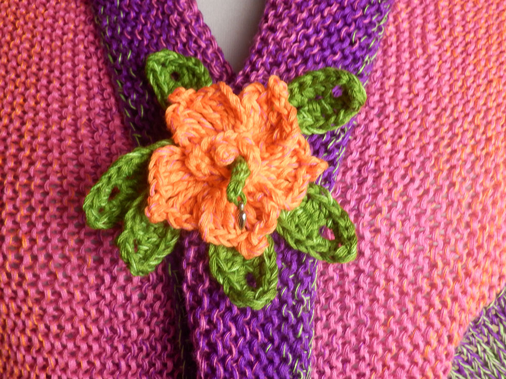 Die Inspiration kommt wie sooft aus der Natur. Bei einem Spaziergang in dem wundervollen Garten einer Freundin gefiel mir der Hibiskus besonders gut. Da ich kurz vorher das Tuch „Hibiskus“ gehäkelt hatte und diese Idee noch einmal in gestrickt aufgreifen wollte kam mir diese Farbidee. Nun, das Ergebnis sehr ihr ja hier und ich bin begeistert.
