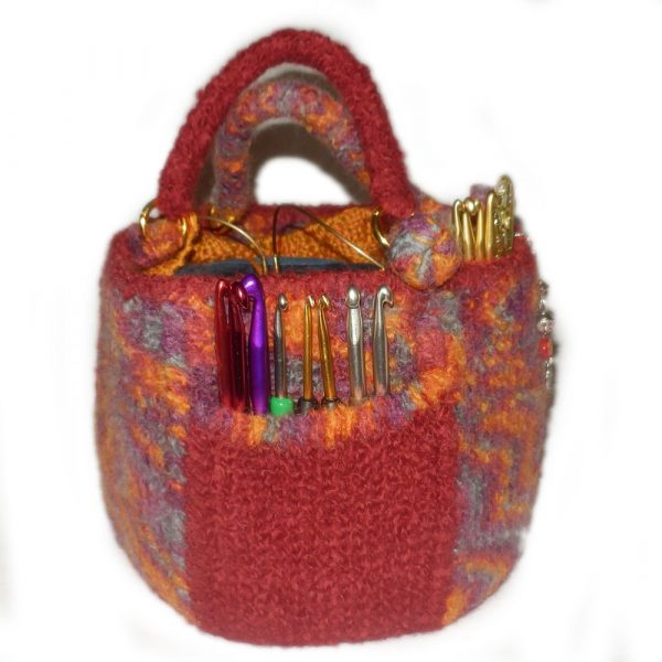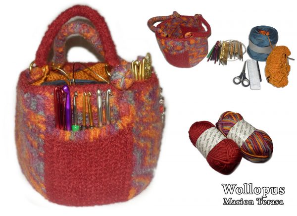 Das ist dann am nächsten Tag draus entstanden. Ein Filzkörbchen mit stabilen Seitenwänden und Taschen. Das beste ist, ich musste die Taschen nicht extra häkeln und aufnähen, das passiert in einem Rutsch!
