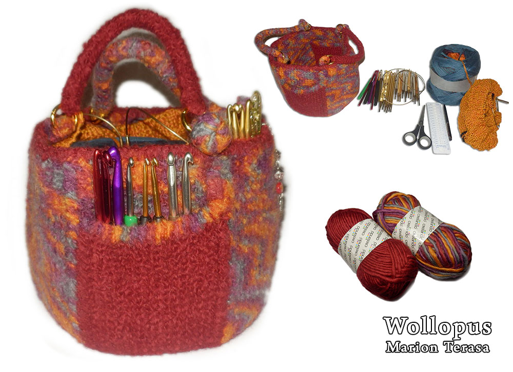 Die Henkel habe ich gestrickt, aber wer lieber häkelt braucht nur ein entsprechendes Band häkeln. - Wer es mag, Verzierungen