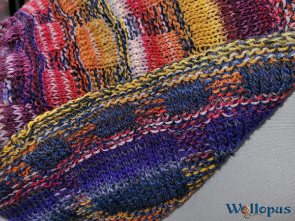 Gerade für Doubleface-Einsteiger ist er ideal, da er fast ohne Zählen auskommt. Anfangs gibt nur ein bisschen Doubleface zu stricken und dann immer etwas mehr. Perfekt für alle die sich bisher nicht an diese Technik getraut haben und auch zum Üben der Fadenspannung, denn dieser Loop verzeiht so einiges.