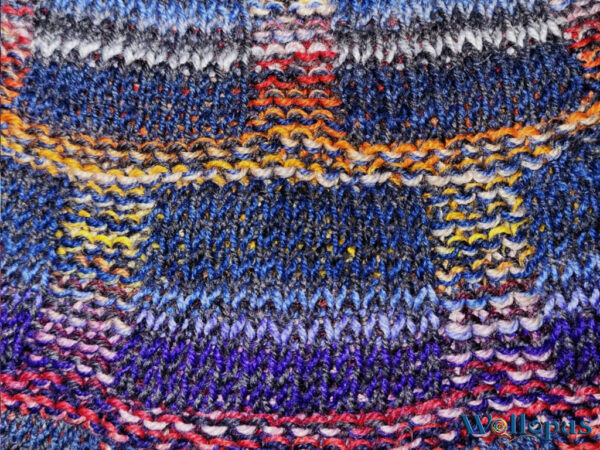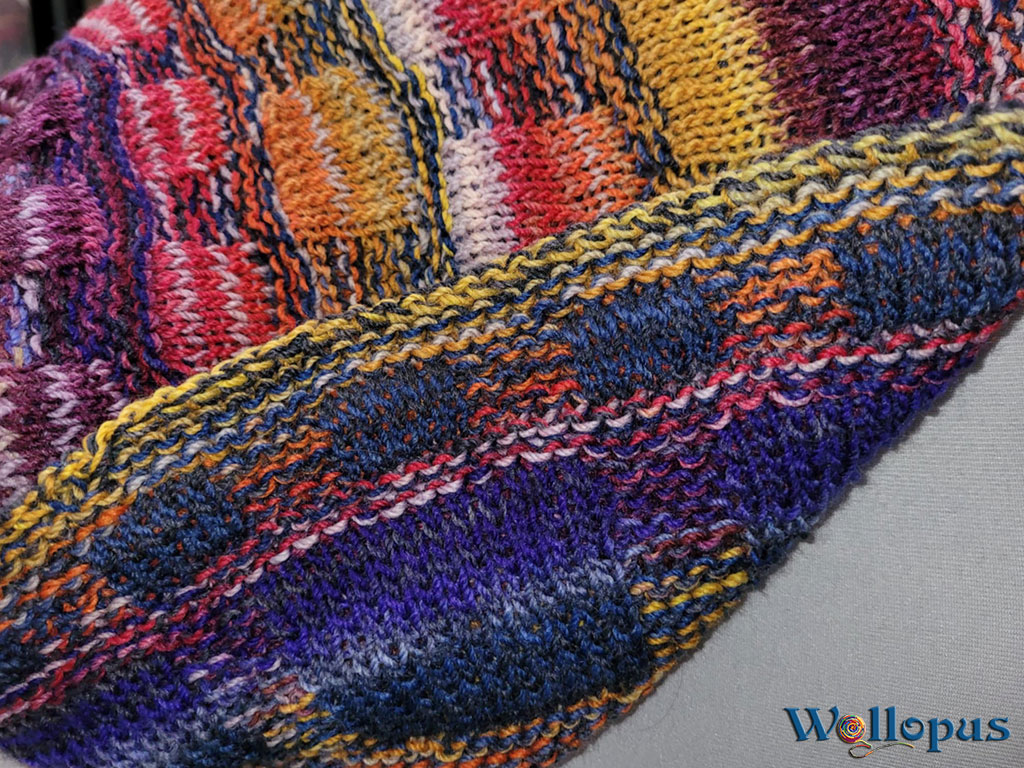 Ein kraus Rechtsmuster mit zwei Fäden und dazwischen Doubleface – das ist die Grundlage dieses besonderen Loops. Dank der tollen Woolly Hugs Paint Socks entsteht ein wunderschöner Farbverlauf, der dem Projekt eine einzigartige Note verleiht. Der Loop ist besonders warm und wird nach unten hin schön breit, was ihn unglaublich angenehm zu tragen macht. Die gut integrierten Zunahmen sind so gestaltet, dass sie kaum auffallen und dennoch für eine perfekte Passform sorgen.