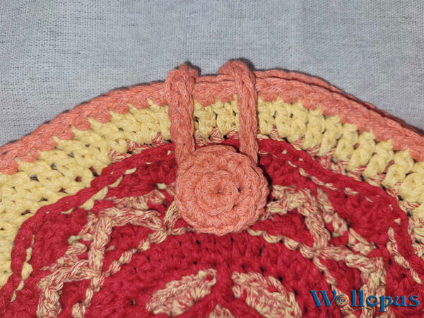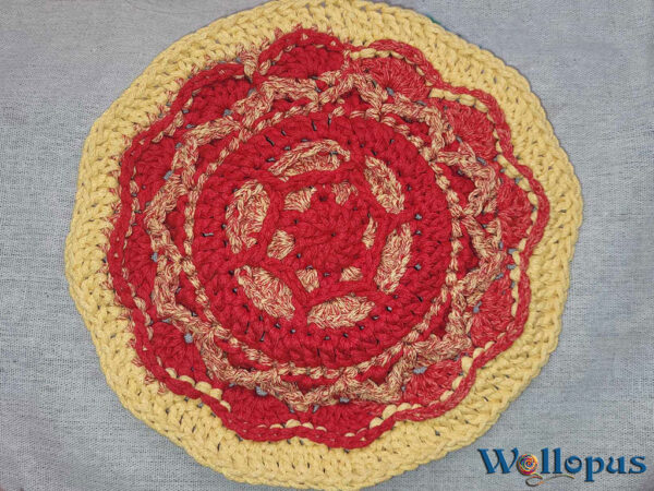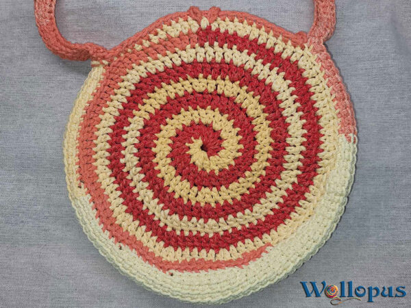 Stell dir vor, du hast eine Tasche aus dem Woolly Hugs ROPE BOBBEL in den schönsten Sonnenfarben! Auf der Vorderseite prangt ein faszinierendes Mandala, das einfach jeden Blick auf sich zieht. Und auf der Rückseite? Da überrascht dich eine dynamische Spirale, die dir garantiert gute Laune macht.