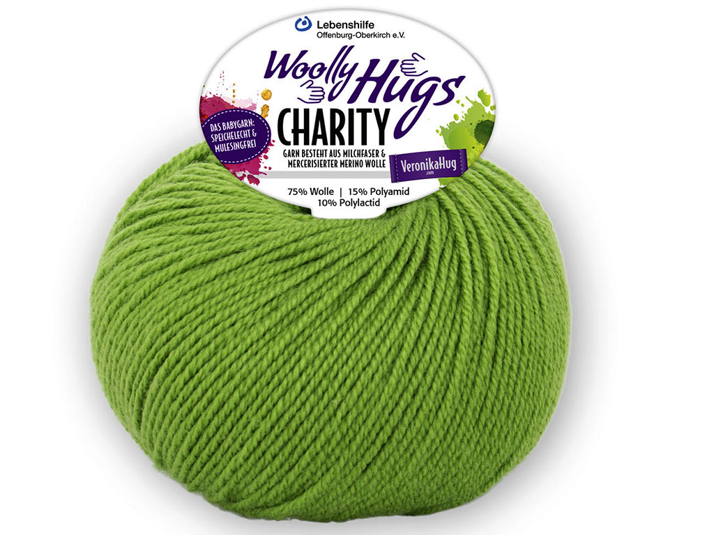 Für das abgebildete Modell habe ich die Woolly Hugs Charity benutzt. Das Garn ist einfach super zu verstricken, sehr weich, für Babys geeignet und mulesingfrei. Es besteht aus 75% Wolle (Merino mercerisiert) 15% Polyamid 10% Polylactid (Milkfibre) und hat eine Lauflänge von 100m/50g. Empfohlen wird eine Nadelstärke von 3,5 – 4,5.