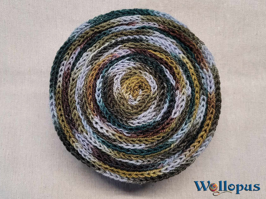 Nun wird gekurbelt und daraus entsteht der Knotenloop. Wie ihr am Bild schon gesehen habt, sind es 2 Loops, aber Beide werden auf die gleiche Art und Weise gefertigt.