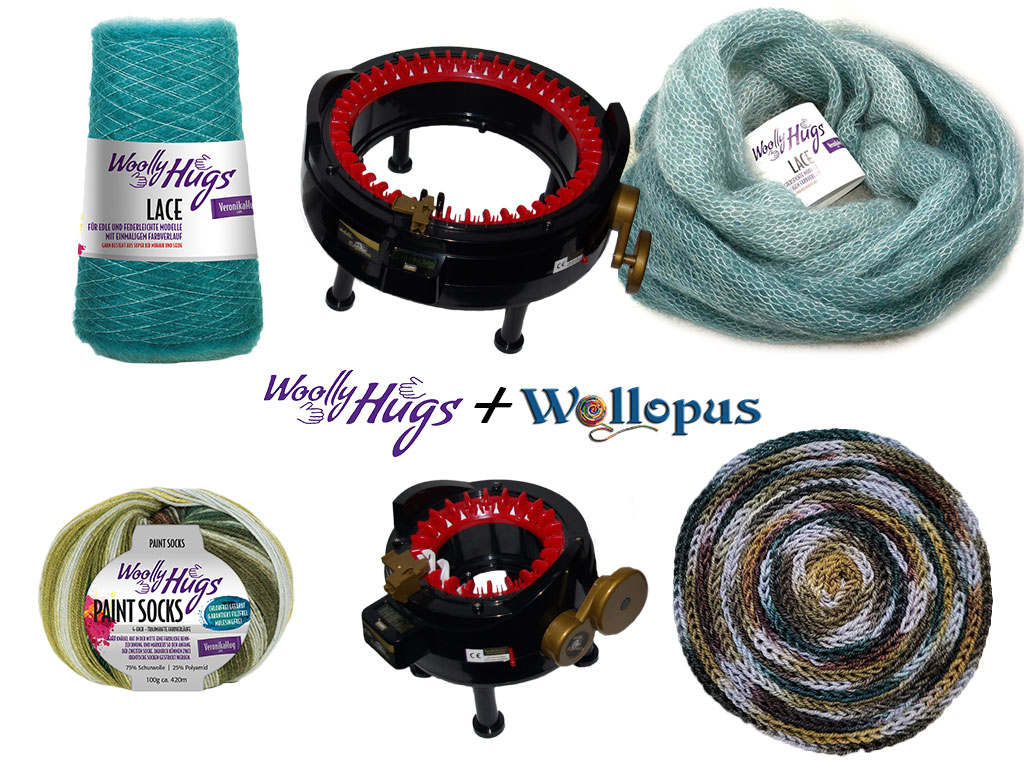 Es begann damit, das Veronika Hug versuchen wollte, die Woolly Hugs LACE auf der addi Kingsize zu verstricken. Heraus kam ein 5,2 m langer super leichter und kuscheliger Schal.