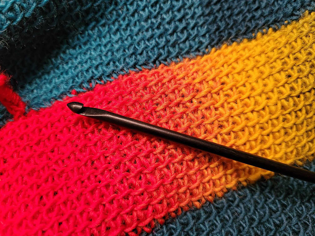 Bunte Farbenpracht: Noose-Loop in tunesisch gehäkelt