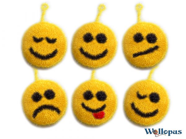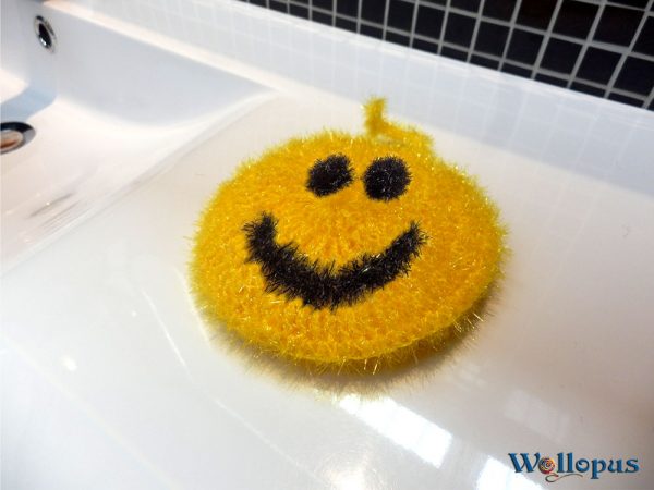 Dieses Garn heißt Schwammgarn, hat aber mit einem Schwamm gar nichts gemeinsam. Es ist absolut nicht saugfähig. Doch es ist leicht pieksig und der Reinigungseffekt dadurch groß. Man kann es eher mit der rauen Seite eines Topfschwamms vergleichen.