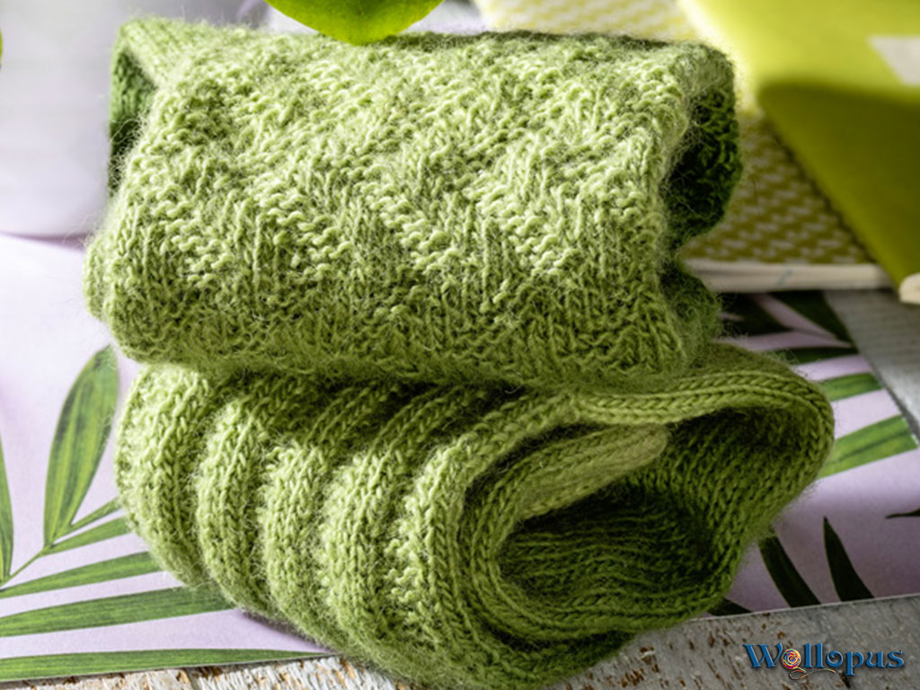 Die Modelle haben sehr effektvolle und dennoch meist einfache Muster, die durch die wunderschönen Farbverläufe der Woolly Hugs YEAR SOCKS Garne besonders schön zur Geltung kommen. Überwiegend gibt es rechts/ links Muster, jedoch sind auch einige dabei, die etwas herausfordernder sind.