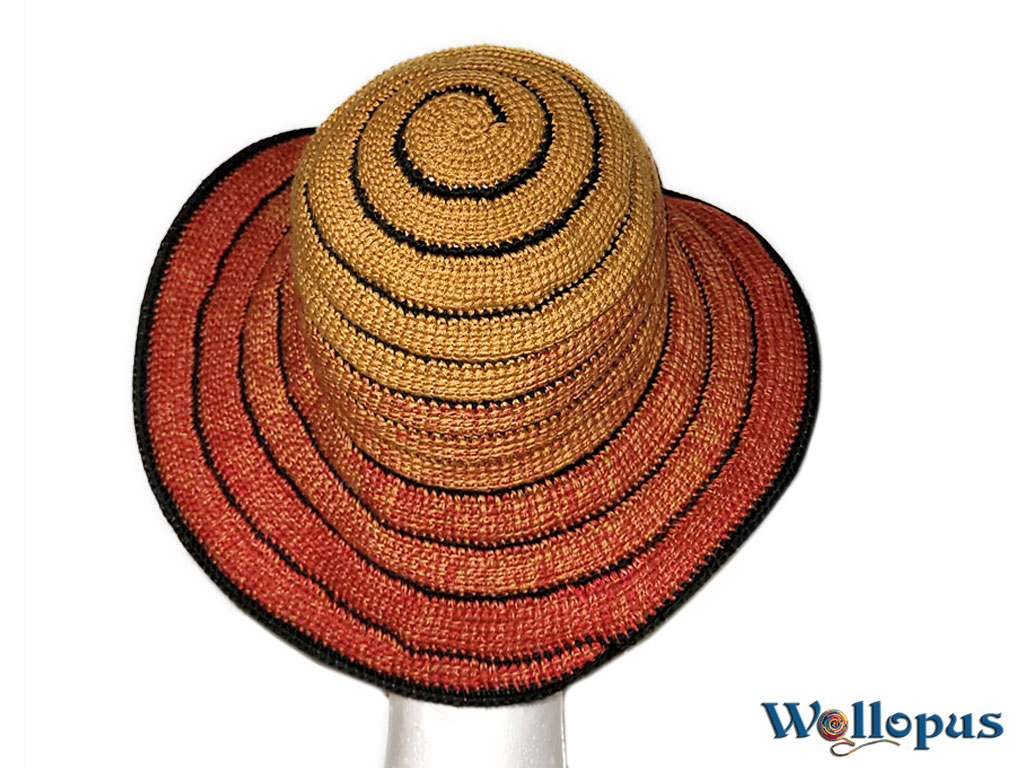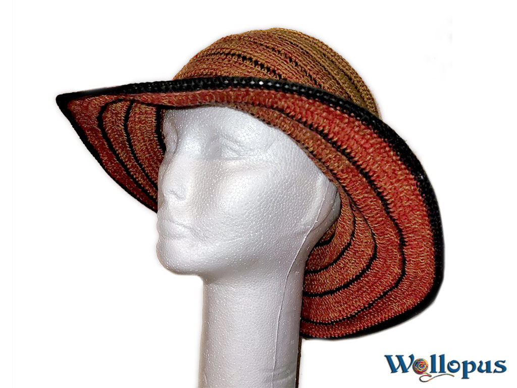 - Kopfdurchmesser meines Huts: 56 – 58 cm, kann aber angepasst werden. Tabelle ist enthalten.