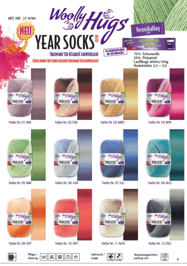 Woolly Hugs YEAR-SOCKS (75% Schurwolle, 25% Polyamid, Lauflänge ca. 400 m/100 g)