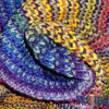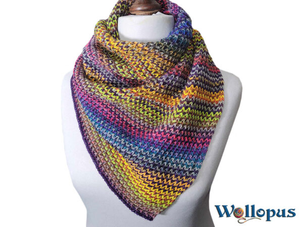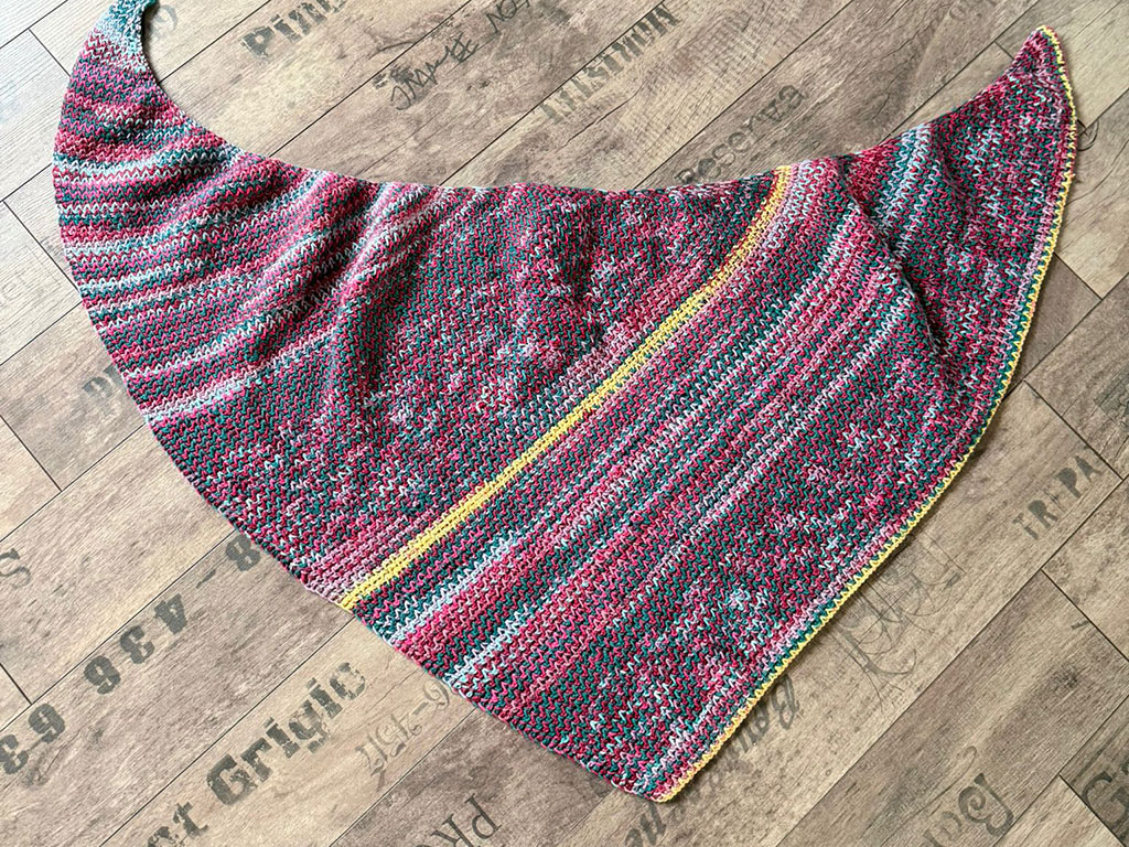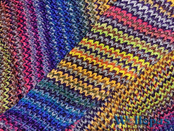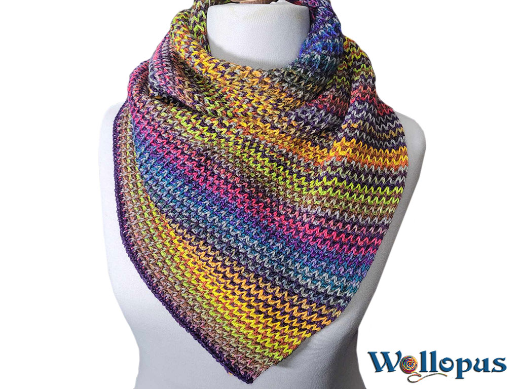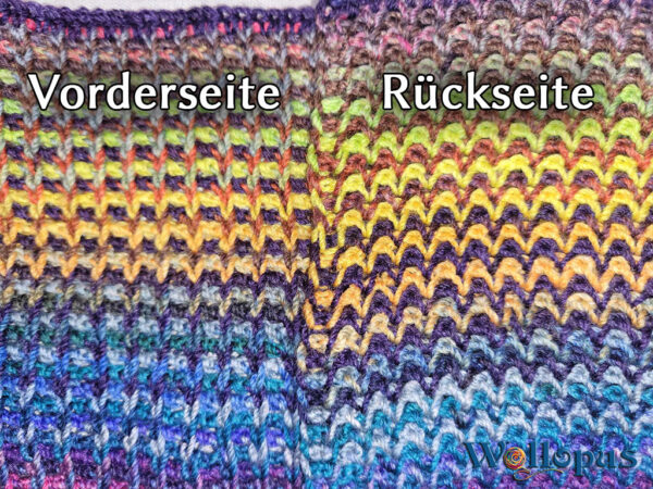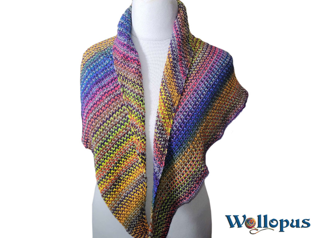 Selten war ein Tuch so schnell fertig! Woran lag es? An der Sucht! Das Häkeln hat mich so sehr gepackt, dass ich ein ganzes Wochenende lang nicht mehr aufhören konnte. Es ist unglaublich spannend, zu sehen, welche Farben als Nächstes aufeinandertreffen – eine Farbenexplosion, die einfach herrlich ist! Das Muster ist überraschend einfach, sieht aber von beiden Seiten elegant aus. Das Beste daran: Es rollt sich nicht ein und fühlt sich weicher an als jede Wolke. Ein echtes Highlight unter den tunesisch gehäkelten Tüchern!