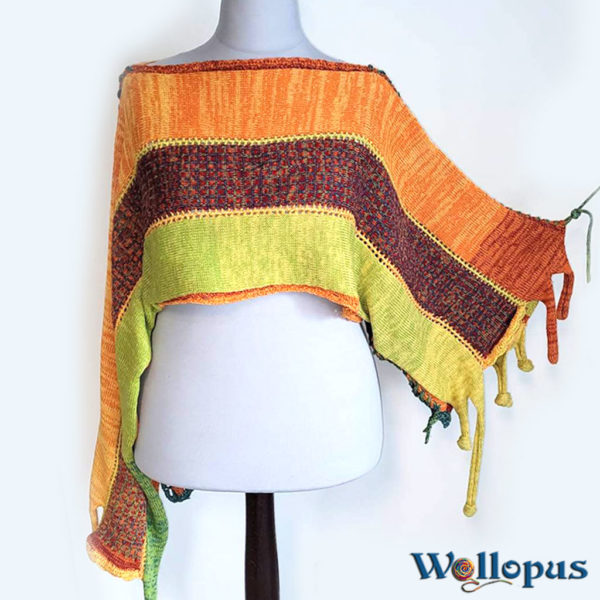 Jeder kennt doch den Begriff: „Eierlegende Wollmilchsau“. Gemeint ist etwas, was so gut wie alles kann. Unsere Wollmilchsau ist ein Kleidungsstück, was sehr variabel ist. Ein Loop? Ja. Ein Schal? Natürlich. Eine Weste? Kein Problem, Eine Krabbeldecke für die Kleinen? Auch das geht. Ein Kurzpulli? Aber natürlich 🙂