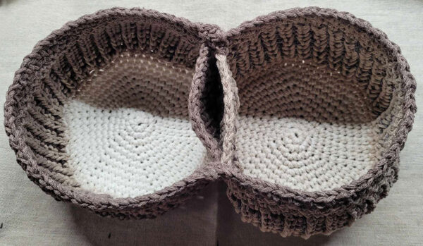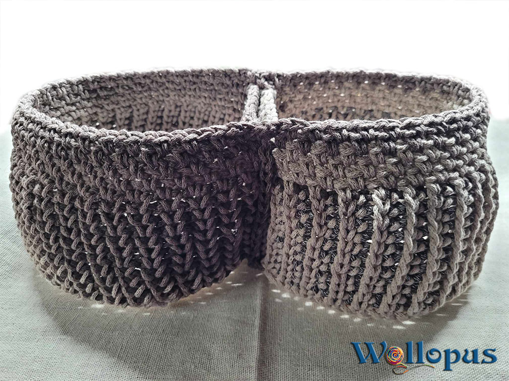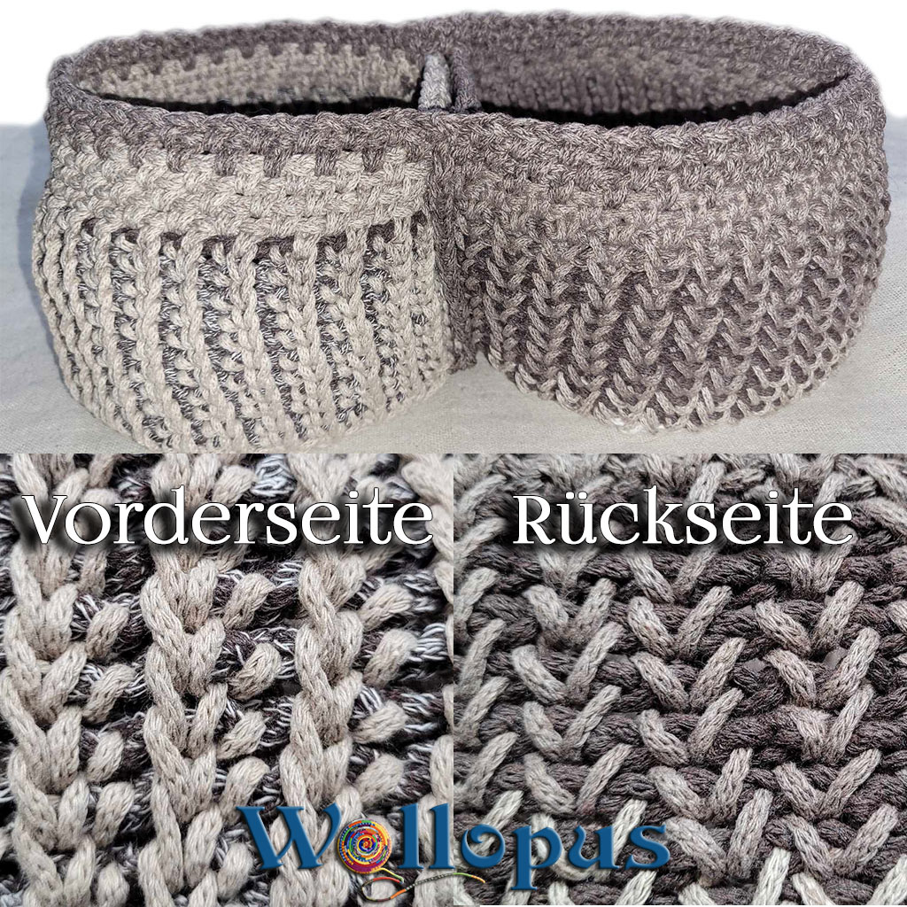 Seit dem achte ich viel mehr auf die Rückseiten, vorher waren die mir eher egal… sieht ja keiner. Bei diesem Körbchen muss das nun nicht mehr gefragt werden. Eine Seite ist die Vorderseite, das andere Körbchen ist umgestülpt und zeigt die Rückseite, die ich auch total schick finde.