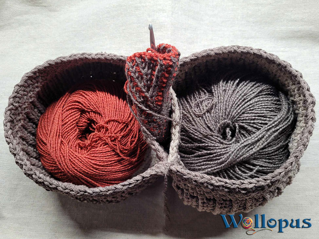 Wie ihr ja wisst, nehme ich am Zoommeeting von Veronika Hug Teil. Und dort wurden die süßen gestrickten Körbchen gezeigt die für das Doublefacestricken benutzt wurden, damit auch jedes Knäuel sein eigenes Körbchen hat. Das fand ich so praktisch… ich wollte unbedingt ein Körbchen stricken und zwar in einem Rutsch. Also wie eine 8 mit Steg, der eine mittlere Tasche bildet. Ok, ich machs kurz… nach 2 Tagen ribbeln (die ROPE ist klasse zum ribbeln!) habe ich vorerst! aufgegeben. Vorerst…