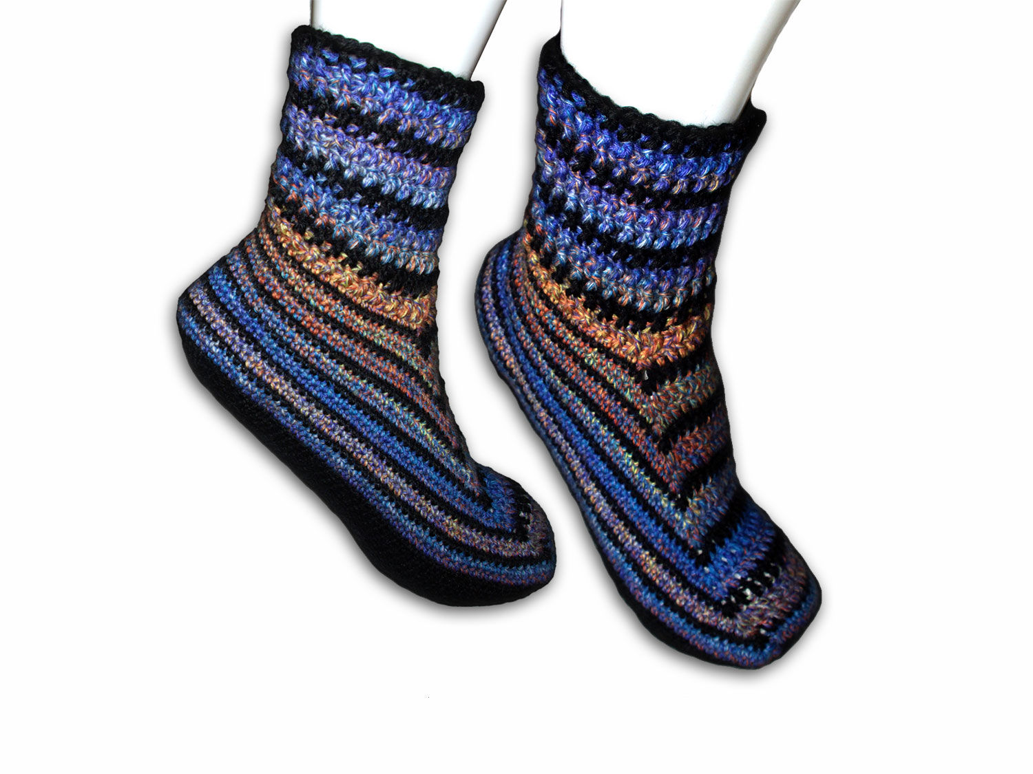 Keine Lust auf Fersen häkeln? Diese Socke kommt ohne aus und wird an einem Stück gehäkelt.