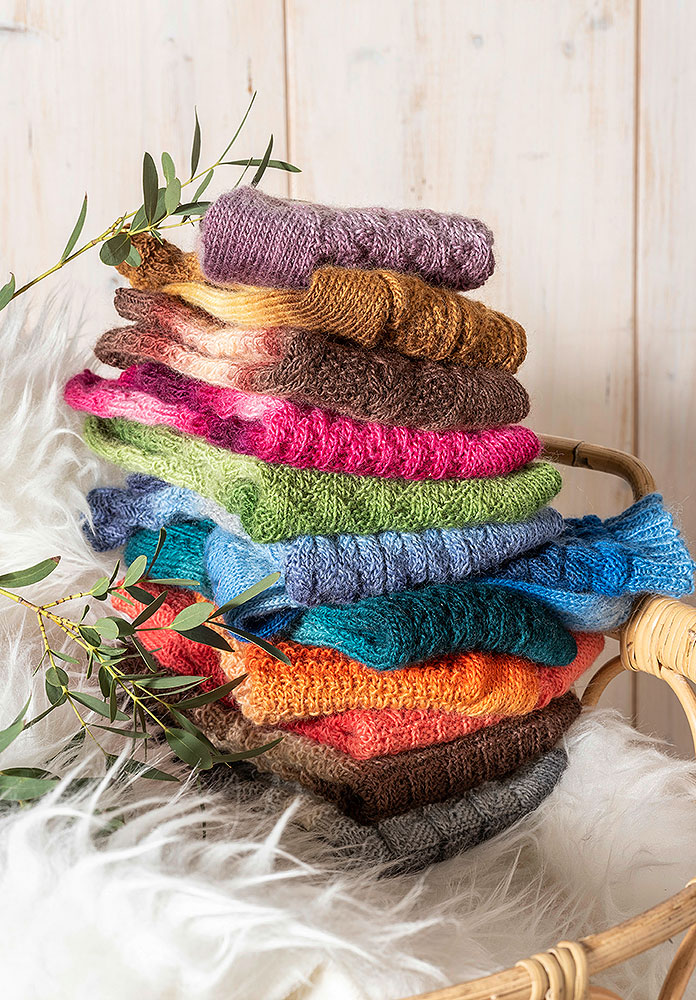 Das fand ich total schade und überlegte, wie man das Problem lösen kann. So entstand die Wollopussocke. Etwas später, in einem Gespräch mit Veronika Hug kamen wir auf die Idee, mit ihrem Garn, die Woolly Hugs YEAR SOCKS, viele Socken mit neuen einfachen Mustern zu gestalten. Da war der Gedankensprung zu einem Buch nicht weit.
