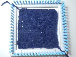 Naja, ein richtiger Webrahmen ist es nicht, aber man kann damit weben. Mit diesen kleinen Läppchen habe ich etwas vor, dazu aber später mehr.
